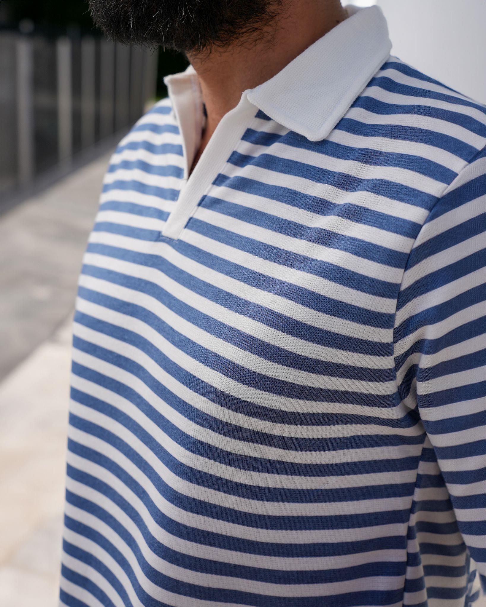 Polo Yaka Indıgo Kumaş Yan Yırtmaç Detay