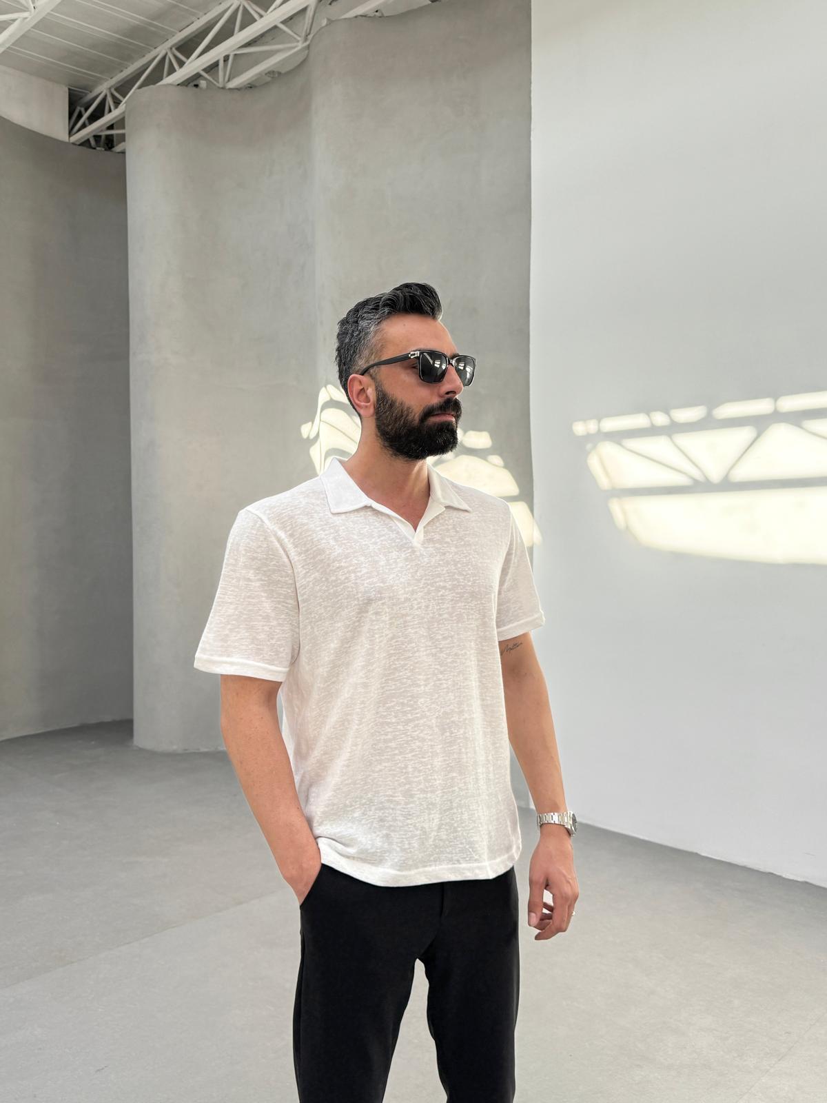 Polo Yaka Pamuk T-Shirt Beyaz
