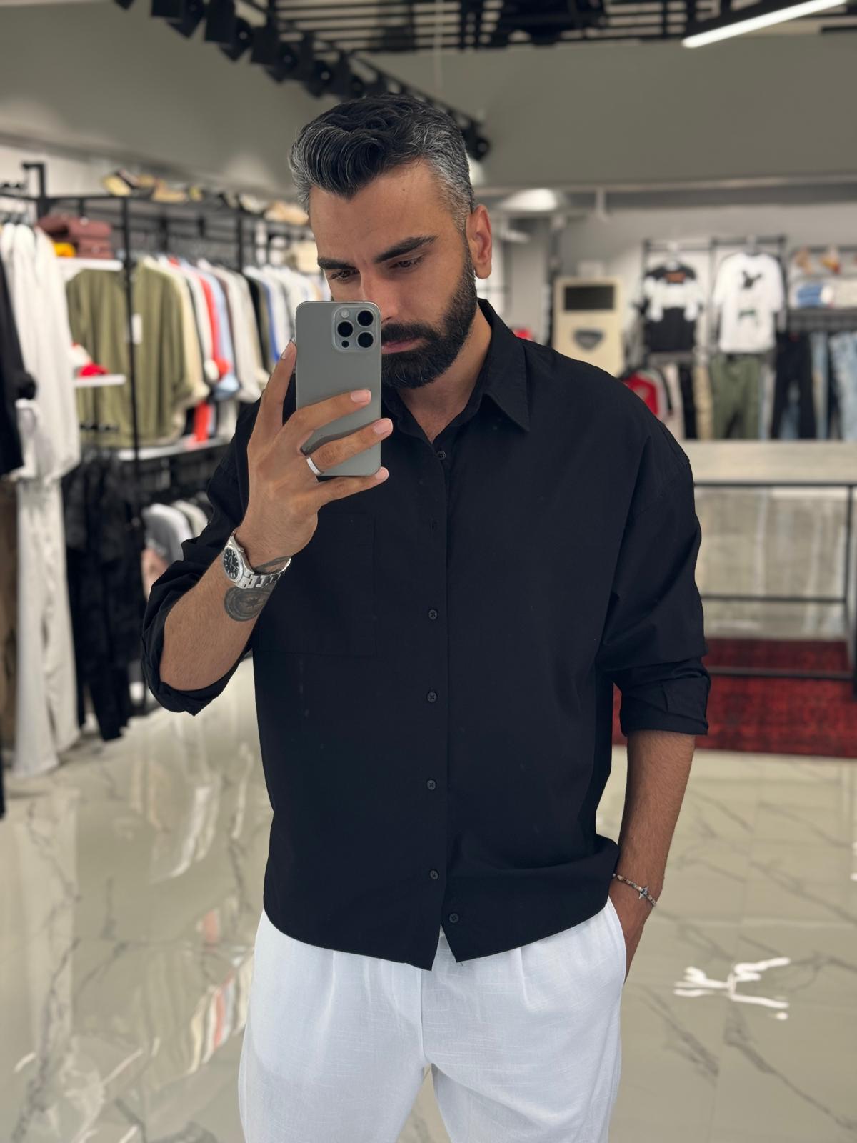 Poplin Keten Gömlek Siyah