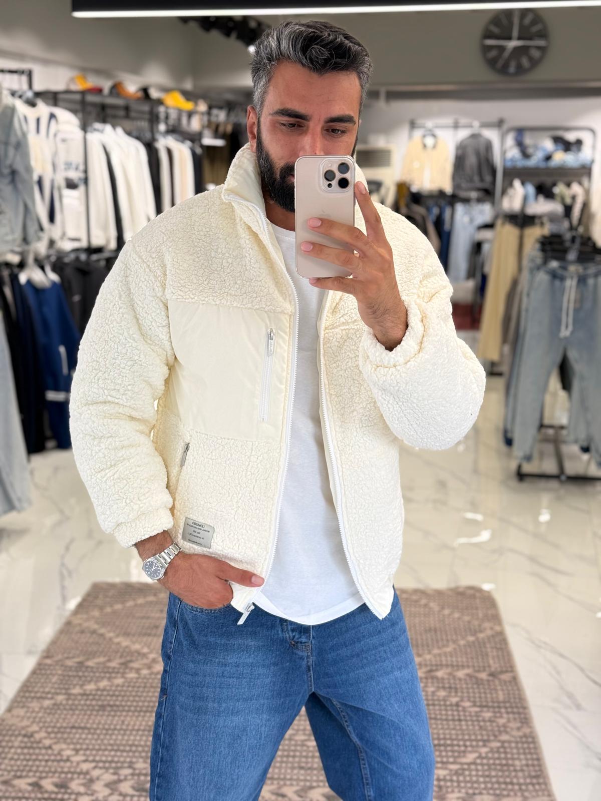 Rahat Kalıp Yakalı Peluş Mont Krem