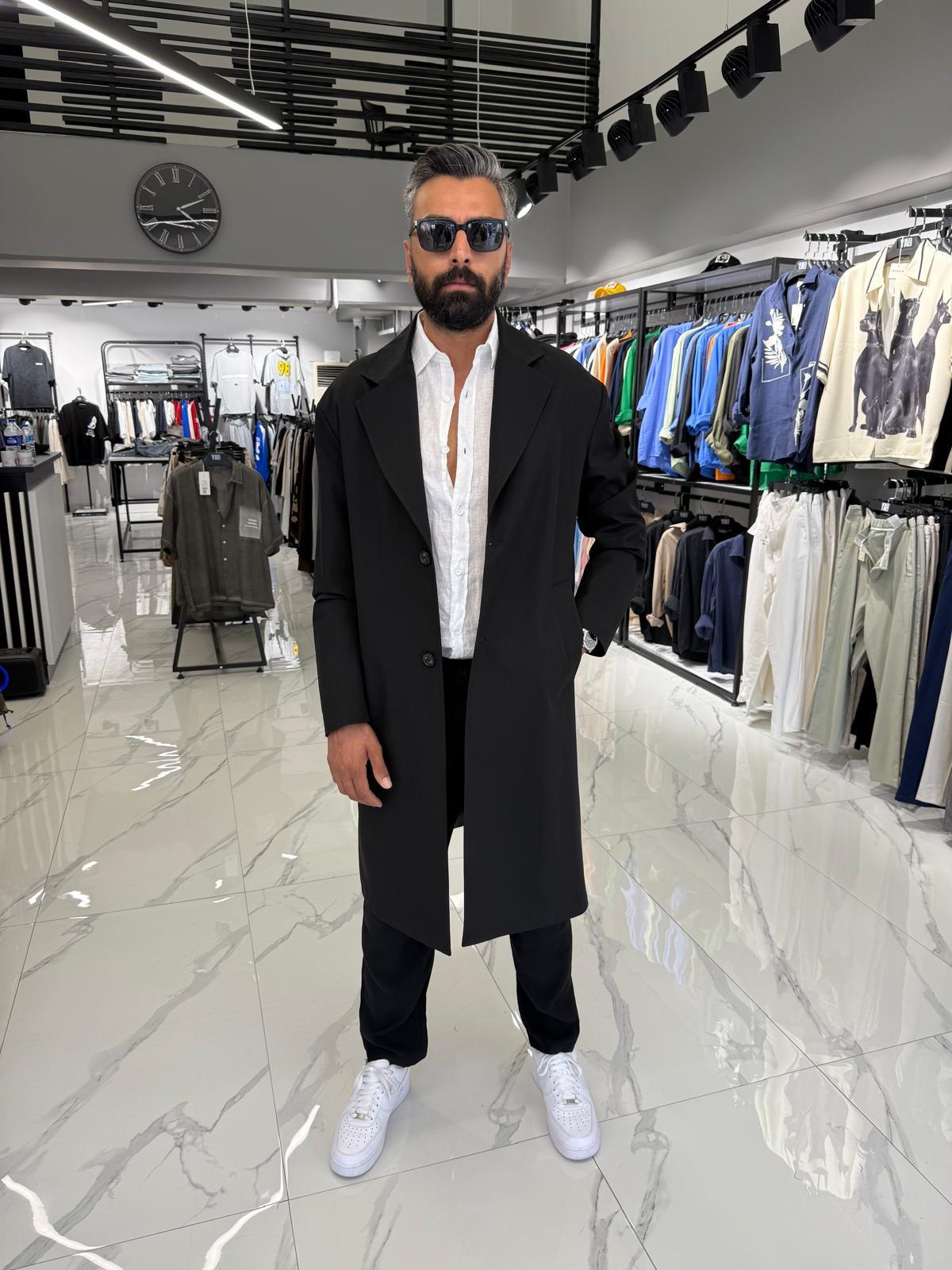 Tek Düğmeli Oversize Kalıp Trençkot Siyah