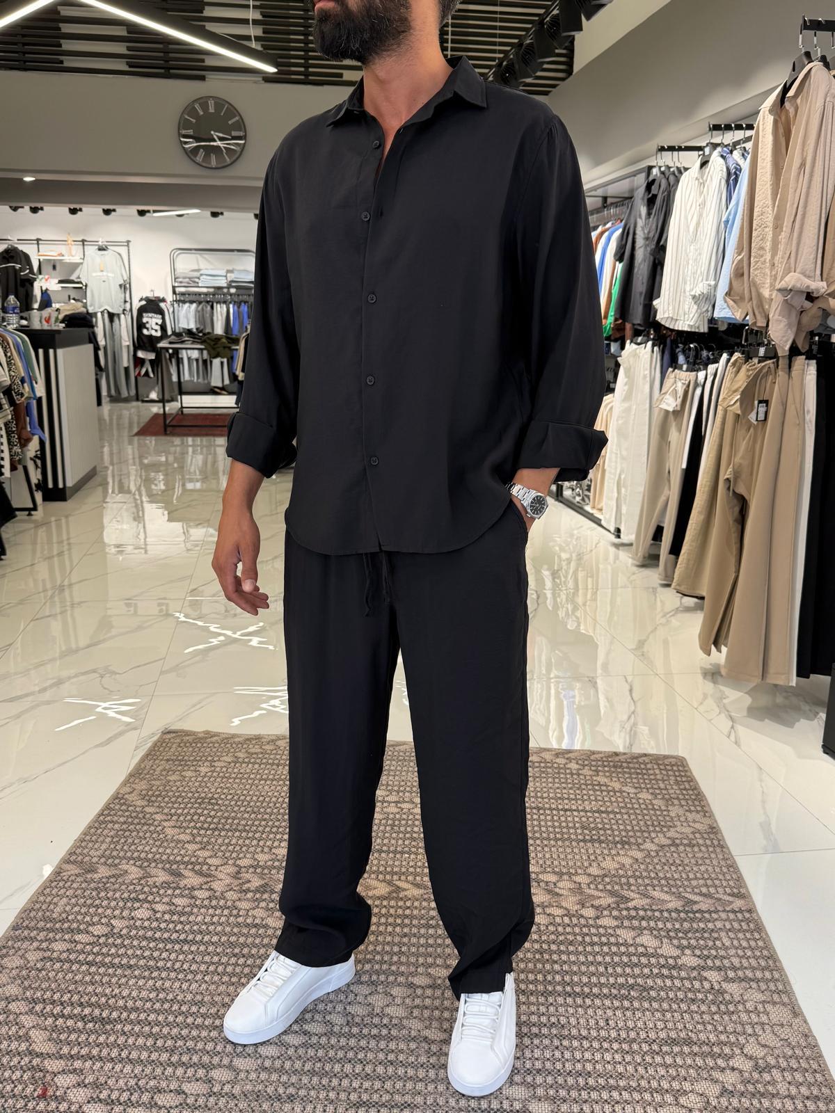 Tensel Kumaş Oversize Kalıp Takım Siyah