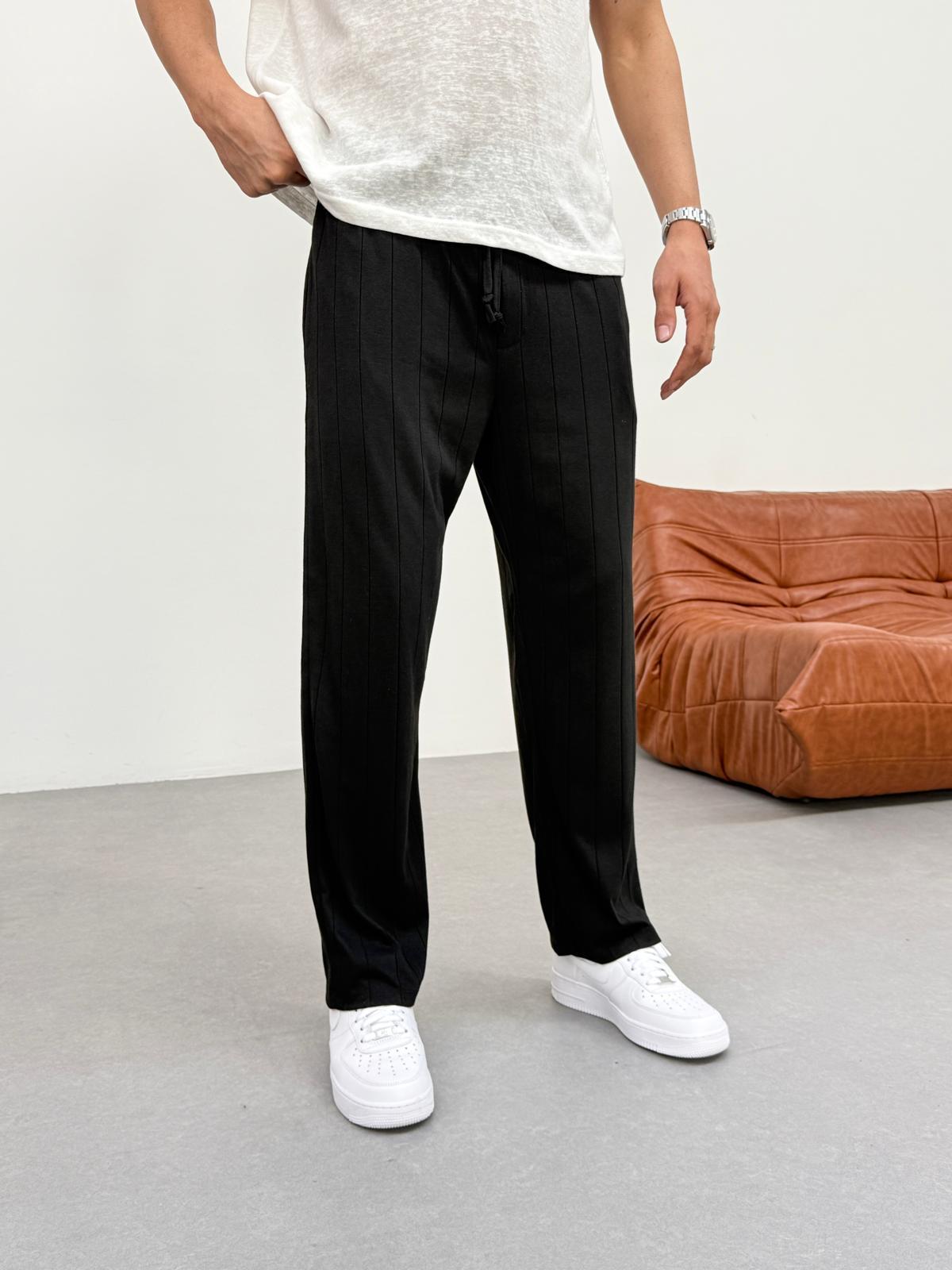 Triko Kumaş Baggy Kalıp Pantolon Siyah