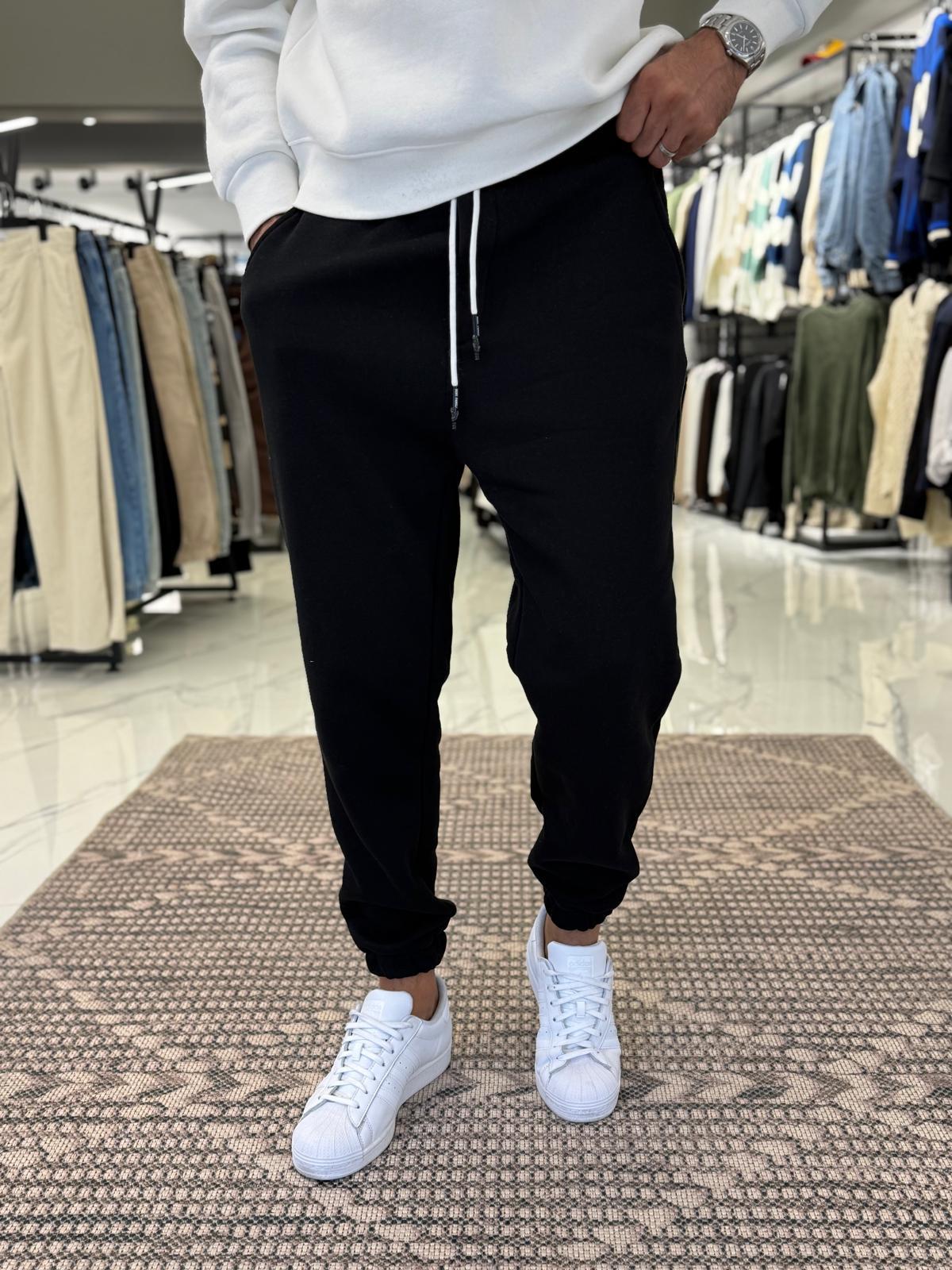 Üç iplik Şardonlu Eşofman Altı Siyah