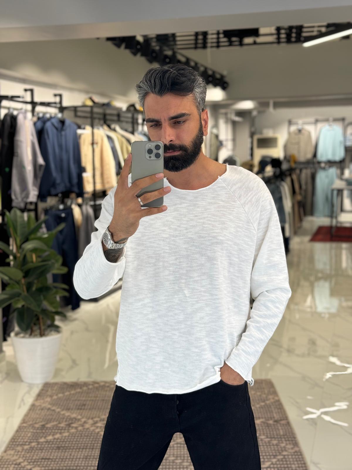 Yaka Detay Basic Sweatshirt Beyaz