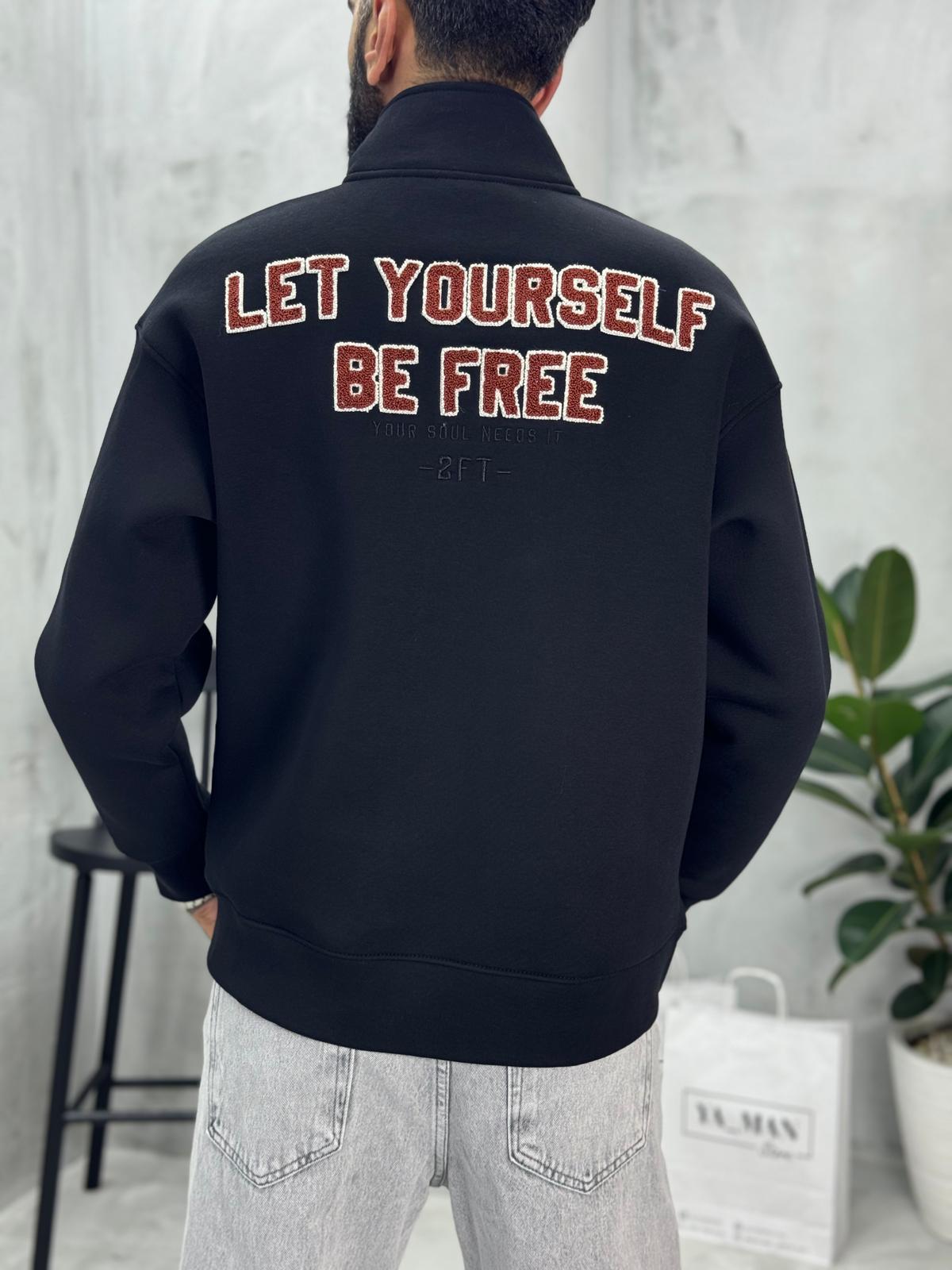 Yarım Fermuarlı Baskılı Sweatshirt Siyah