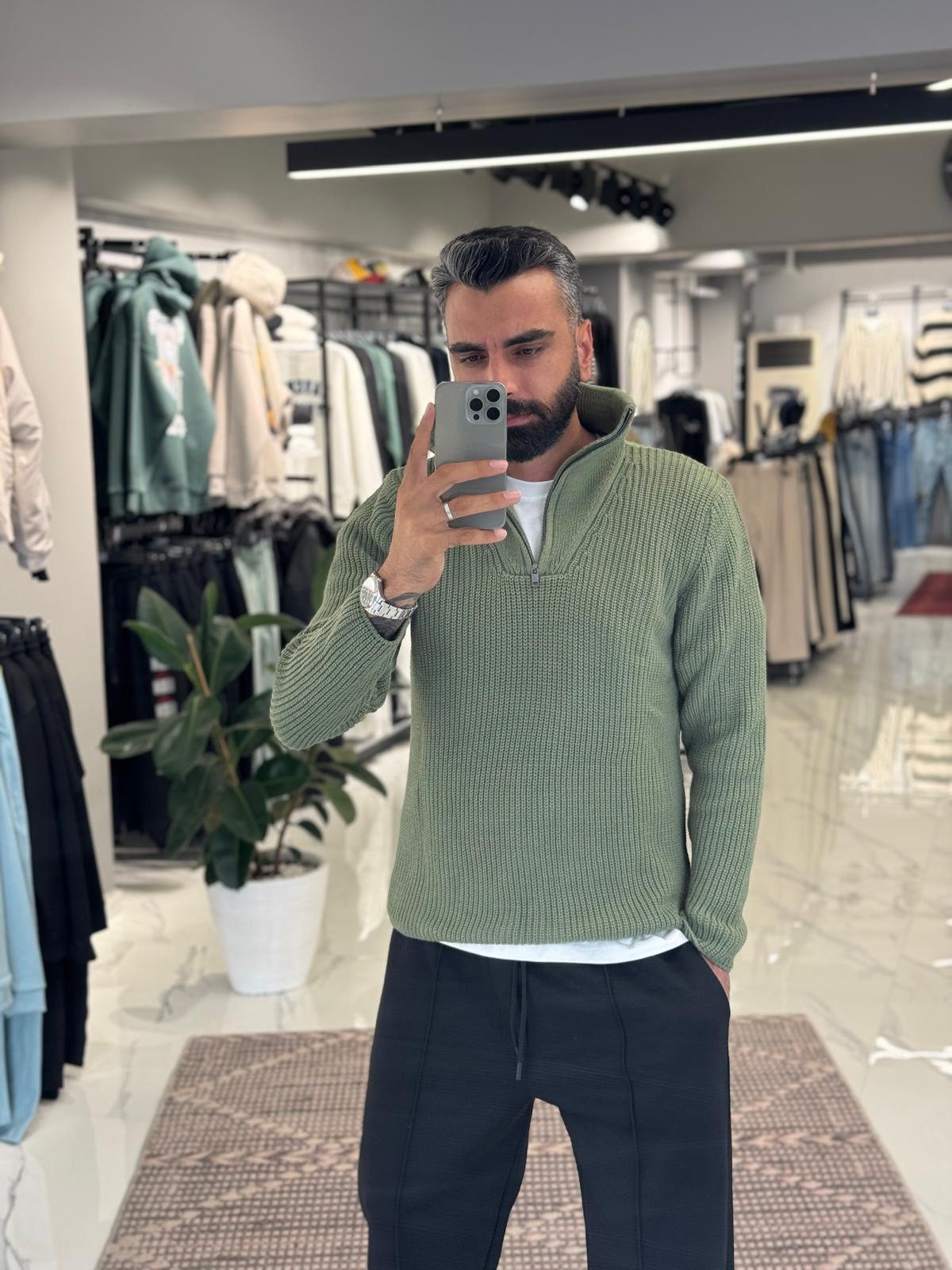Yarım Fermuarlı Yüksek Yaka Triko Yeşil