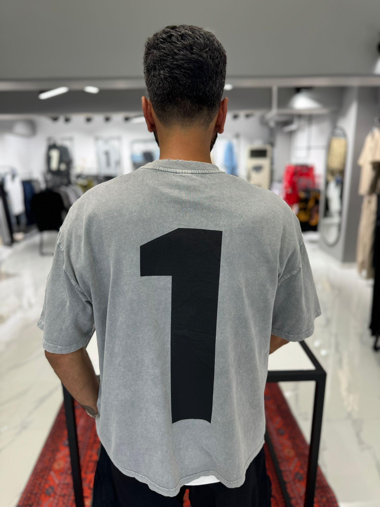 Yıkamalı Baskı Detay Oversize T-Shirt Gri