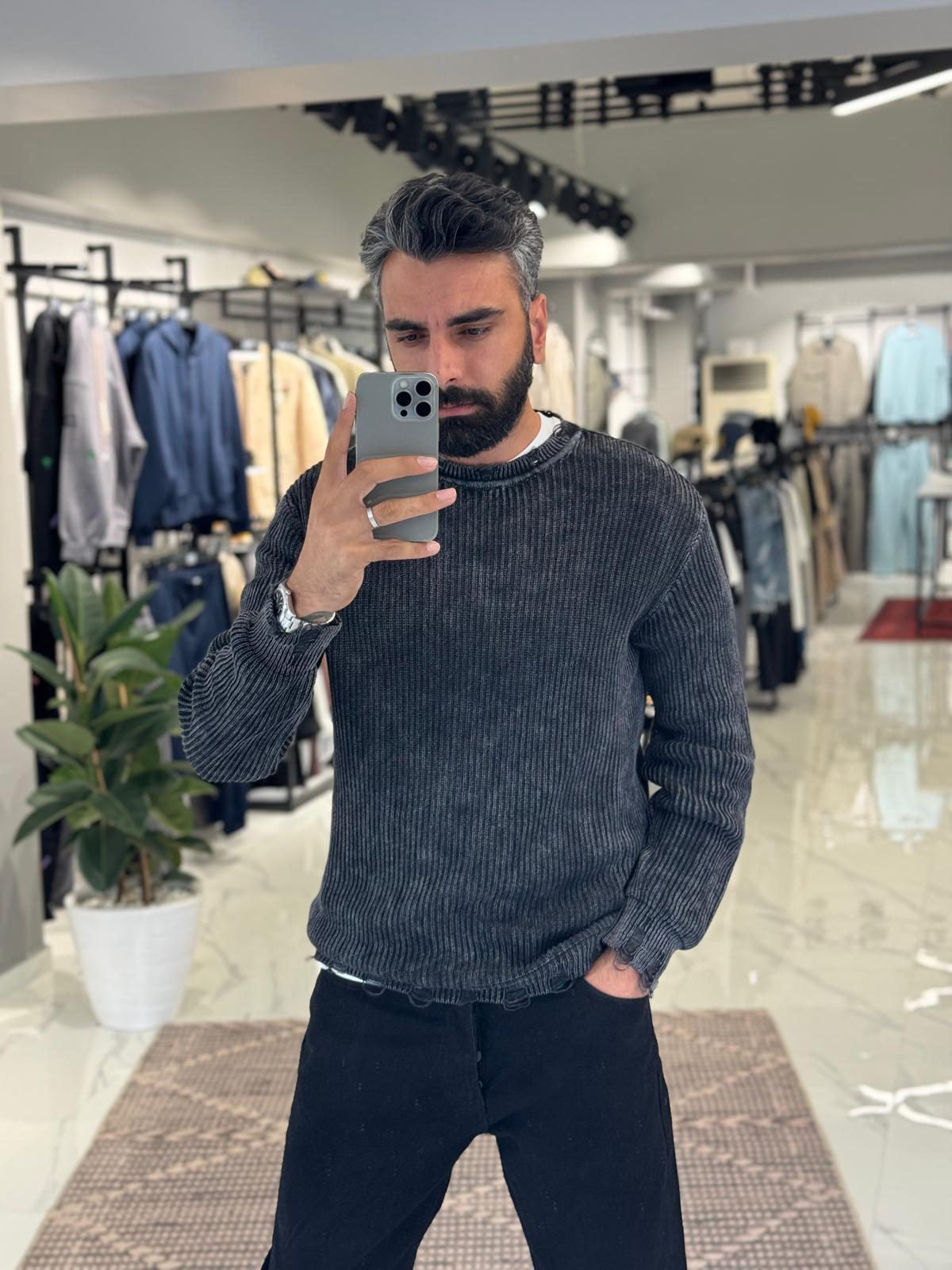 Yıkamalı Örgü Kazak Antrasit