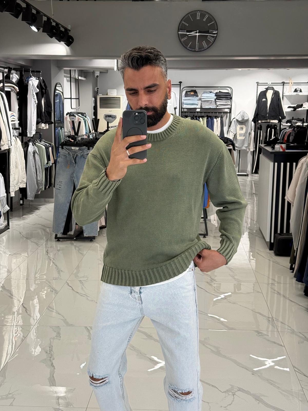 Yıkamalı Oversize Kalıp Kazak Lacivert Yıkamalı Oversize Kalıp Kazak Gri