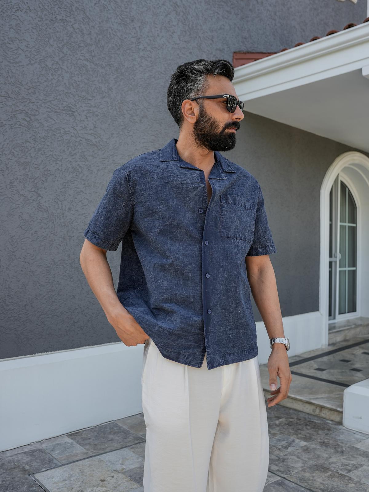 Yıkamalı Pamuk Krop Gömlek Lacivert